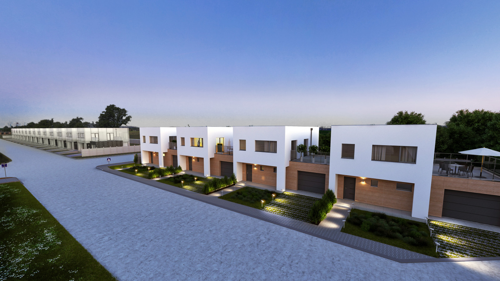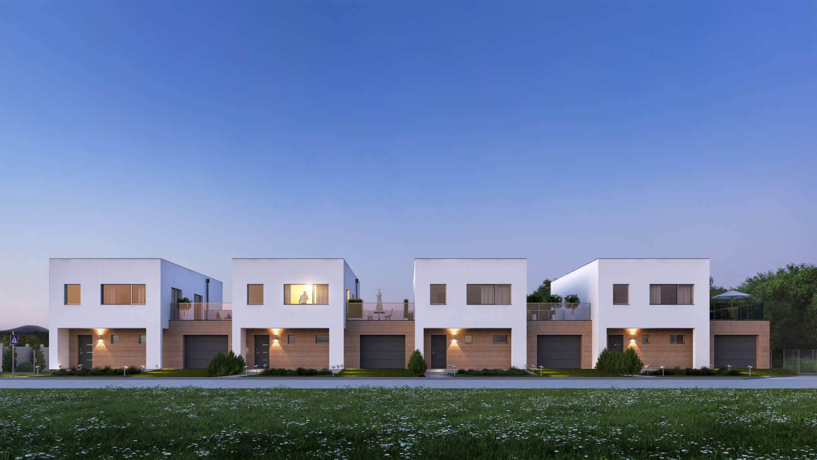 Moderné 2-poschodové, nízkoenergetické radové domy s vlastnou garážou.